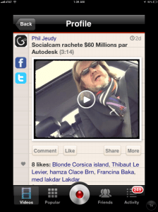– Juillet 2012 : SocialCam est rachetée $60 Millions par Autodesk, société qui commercialise des logiciels de 3D (pour faire simple).