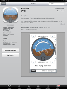 Ça me rappelle un autre projet, développé par un ami assez génial et inventeur lui aussi, qui travaille dans son garage, qui s’appelle Ari Krupnik qui a développé iPhly, une application iOS pour ceux qui veulent transformer leur iPhone ou iPod en une télécommande pour engins téléguidés… Bon, ça prendra un peu plus de temps à paramétrer, mais c’est gratuit et il n’y a pas besoin d’acheter d’appareils, vous pouvez jouer avec le votre…