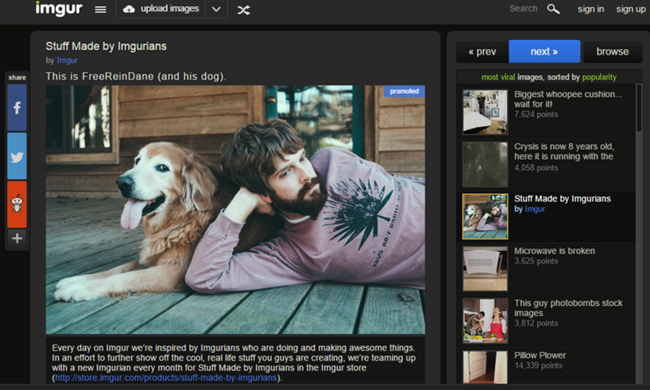 Imgur, société créée en février 2009 à San Francisco, classé 15e site Internet aux États-Unis selon Alexa, lance les articles promotionnels permettant aux partenaires de lapplication de faire apparaître des photos qui seront donc payantes pour les annonceurs. La startup a levé $40 millions à ce jour.