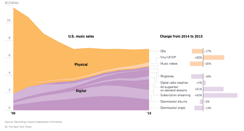 En avant la musique !Spotify vient encore nous faire le coup de nous annoncer un nouveau cap dans le nombre de ses abonnés : 30 millions. Quelle réussite, cette nouvelle génération d’acteurs dans l’industrie de la musique, qui nous amène tout ça tout seul sur nos PC, nos Mac, nos smartphones, nos écrans connectés. Imaginez un peu les royalties que tout ce beau monde. Spotify, Apple Music, Youtube peuvent rapporter. Des milliards vous dites ? Stop ! Le montant évalué aux États-Unis est de $385 millions pour l’année 2015. Moins de $400 millions pour du gratuit, de l’infini, de l’illimité, à perte de vue. Ramené aux nombres d’utilisateurs, ça donne quoi ? Des centimes, peut être, ce n’est pas avec ces pouièmes que l’on va nous trouver le futur Miles Davis, le successeur de Radiohead quand ils vont prendre leur retraite. C’est sur qu’on gagne plus d’argent à louer son canapé sur Airbnb que de chercher à percer dans un monde plein de jeunes crétins que des millions de fans suivent tels des écervelés sur les réseaux sociaux. Ils n’ont pas de pension alimentaire à payer, eux ! Mais ce n’est pas tout : quand on apprend que le marché du vinyl, sur la même année, représente plus de $400 millions (416 pour être précis), on se dit qu’il y a une drôle d’histoire sur le fait de comprendre ce que les gens attendent vraiment par rapport à la musique. C’est vrai que c’est beau, un vinyl. Qui n’a pas passé des heures à écouter “We Will Rock You” en contemplant, les yeux un peu dans la vide, la pochette verte et ce robot avec les membres de Queen ensanglantés dans sa main ? C’est simple : le marché de la musique a vu des milliards de dollars s’évaporer grâce à cette nouvelle génération de plateforme qui a cherché comme souvent à aller plus vite que… la musique et qui aujourd’hui se bagarrent dans les salles d’attente des investisseurs pour aller chercher le revenu qu’il n’auront peut être jamais auprès du grand public, gavé de contenus devenus sans valeur, à consommer sans modération.