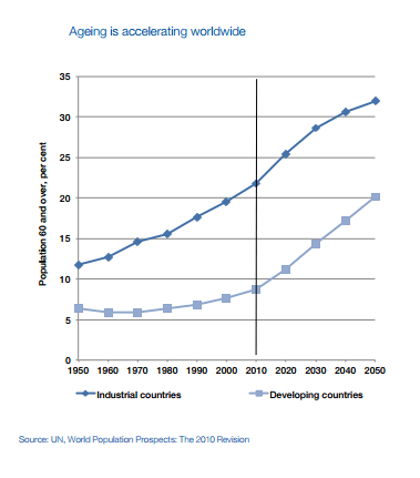 Des entreprise sur ces marchés travaillent déjà à l’adaptation de leur offre au processus de vieillissement. Le vieillissement de la population intervient naturellement dans la plupart des pays du monde, et au cours des prochaines décennies, la part de la population mondiale âgée de 60 ans ou plus devrait atteindre des niveaux historiques sans précédent.