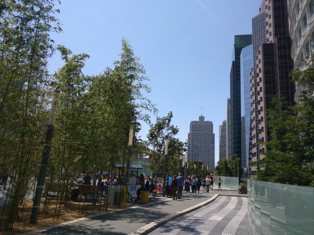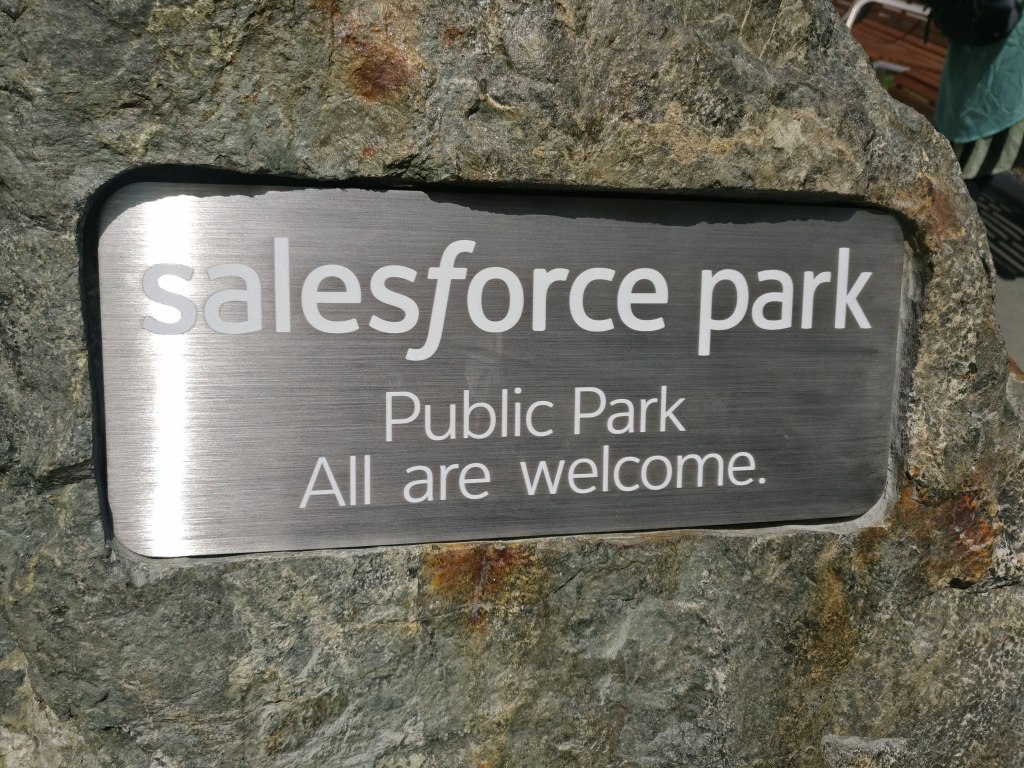 Parler de la nouvelle gare routière de San Francisco et de son parc va nécessairement faire un peu de publicité pour la société Salesforce, mais pour diverses raisons cela ne me gêne pas. Ce que Marc Benioff a fait et fait encore pour la ville de San Francisco, personne n’a fait autant : les Chesky d’Airbnb, les Systrom d’Instagram, les Kalanick d’Uber, les Dorsey de Twitter, et j’en passe, sont plus occupés par (dans le désordre) mesurer quotidiennement la taille de leur égo, leur valorisation boursière, leur défiscalisation généreuse, voyager, profiter de la vie… C’est bien normal, et il est fort connu que le pognon ça occupe.