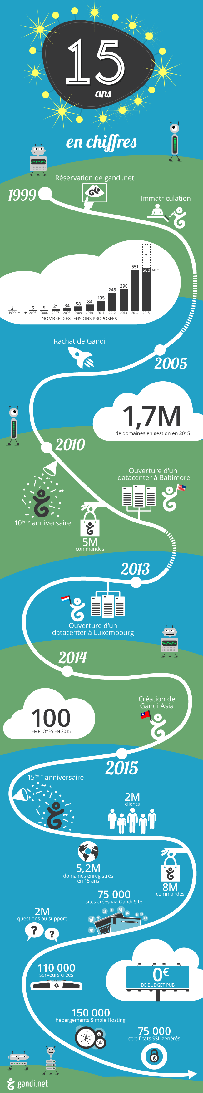 Une société, c’est un peu comme un enfant, on ne la voit pas grandir et pourtant, c’est bien en 1999 que l’aventure a commencé pour GandiPierre BeyssacLaurent ChemlaValentin LacambreDavid Nahmias, 4 Mousquetaires de l’Internet Libre Spirit, décidaient de réunir 5 mots en une espèce de profession de foi : Gestion et Attribution des Noms de Domaine sur Internet.